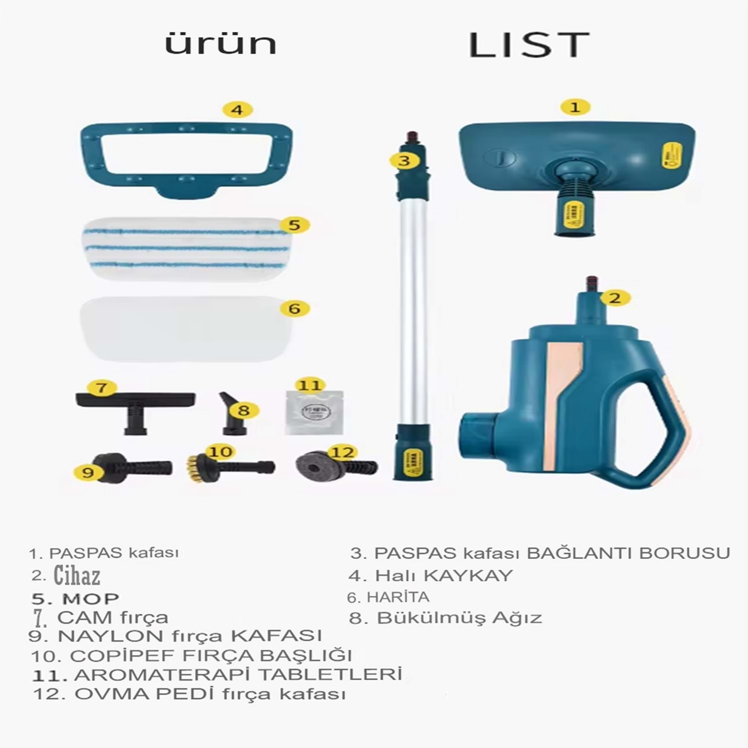 6’in 1 arada buharlı temizleme makinesi. Bu çok amaçlı Havana Buharlı Temizleyici, her zemin tipini ve halılarınızı,