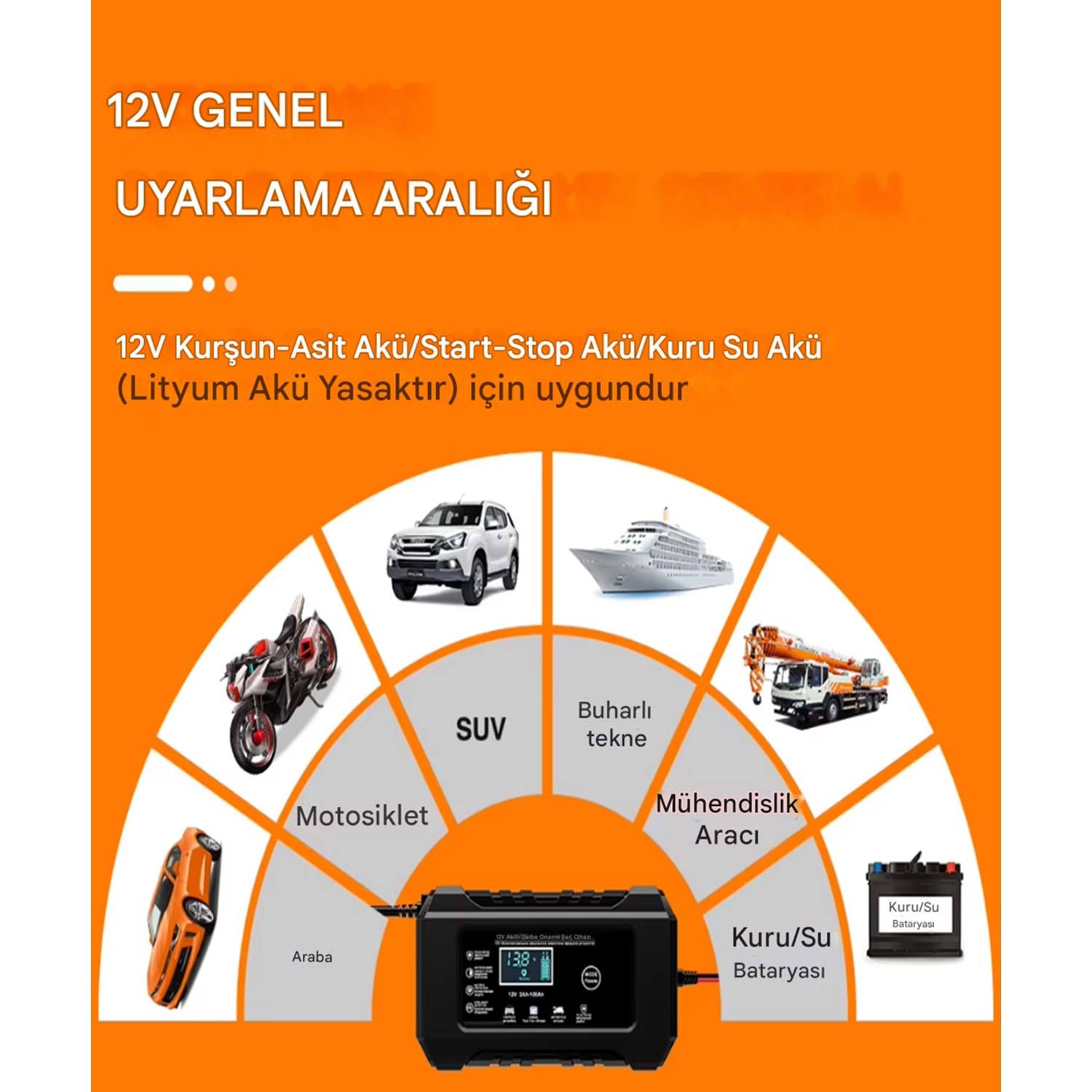 Otomobil, motosiklet, scooter, tekne ve jeneratörlerde kullanılan asitli, sulu, kuru ve jel kurşun aküler için özel olarak geliştirilmiş bu akıllı akü şarj cihazı, 12V 6A çıkış gücü ve desülfatör teknolojisi ile akü ömrünü uzatır ve güvenli şarj sağlar.