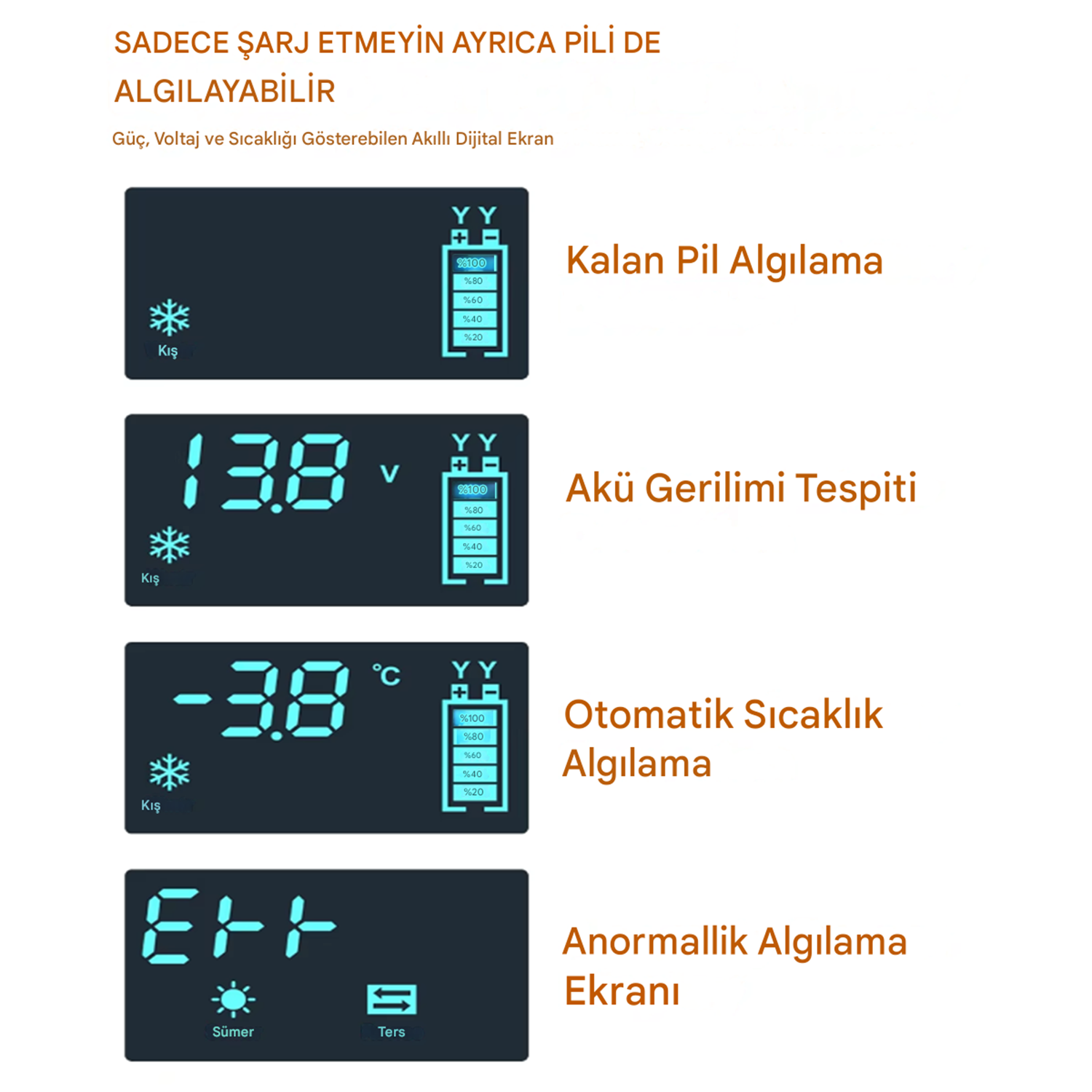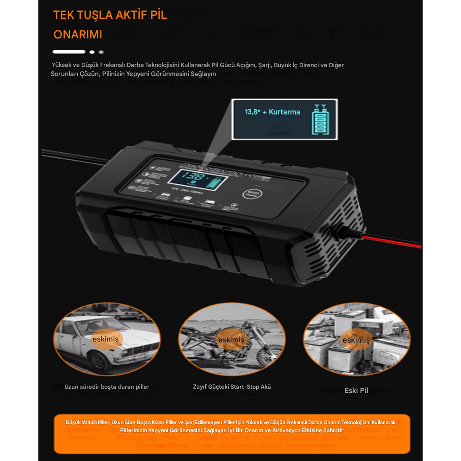 Desülfatör Özelliği: Sülfatlanmış aküleri onarır ve yeniler