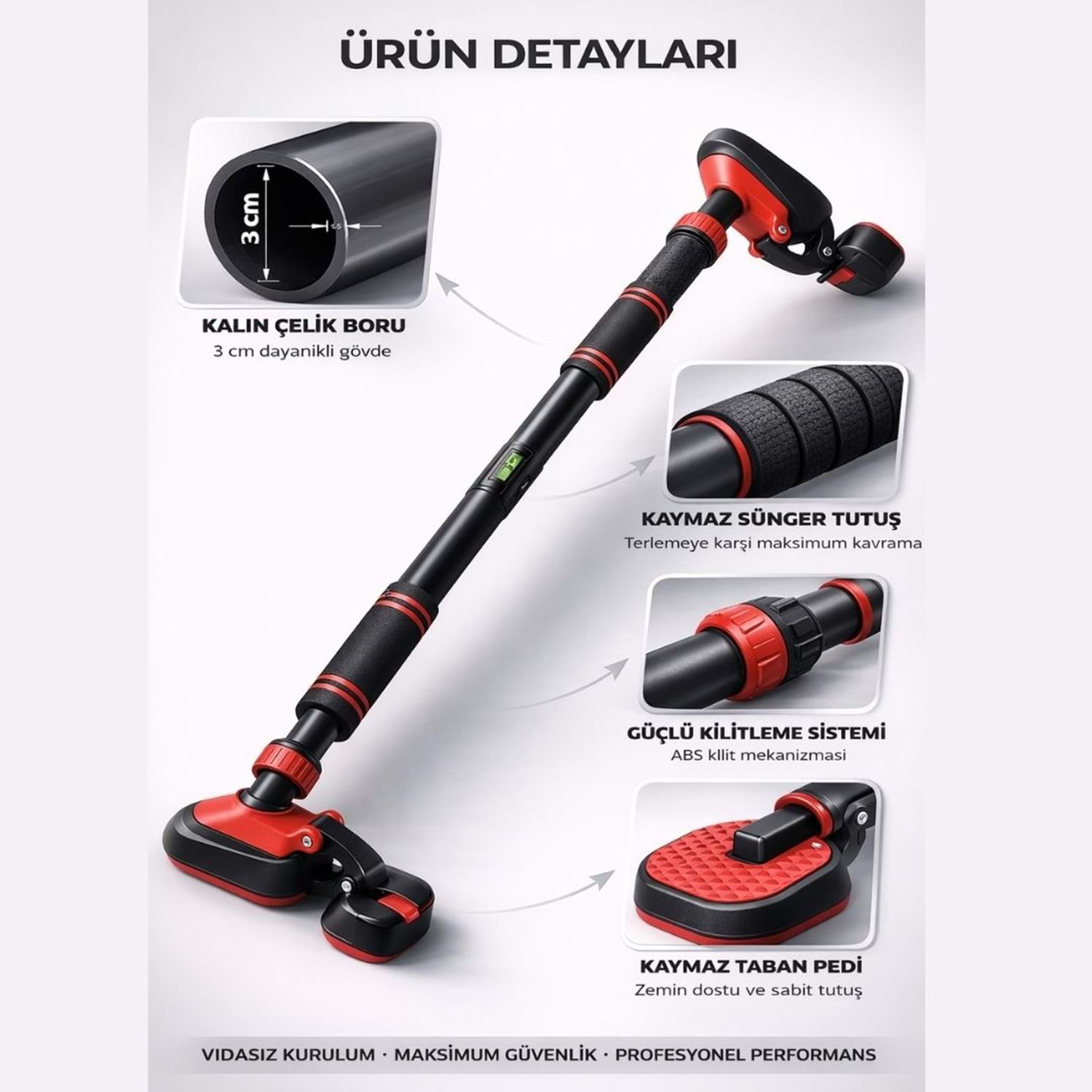 Vidasız ve Çift Ayaklı Profesyonel Barfiks Aleti – 800 KG Taşıma Kapasiteli
