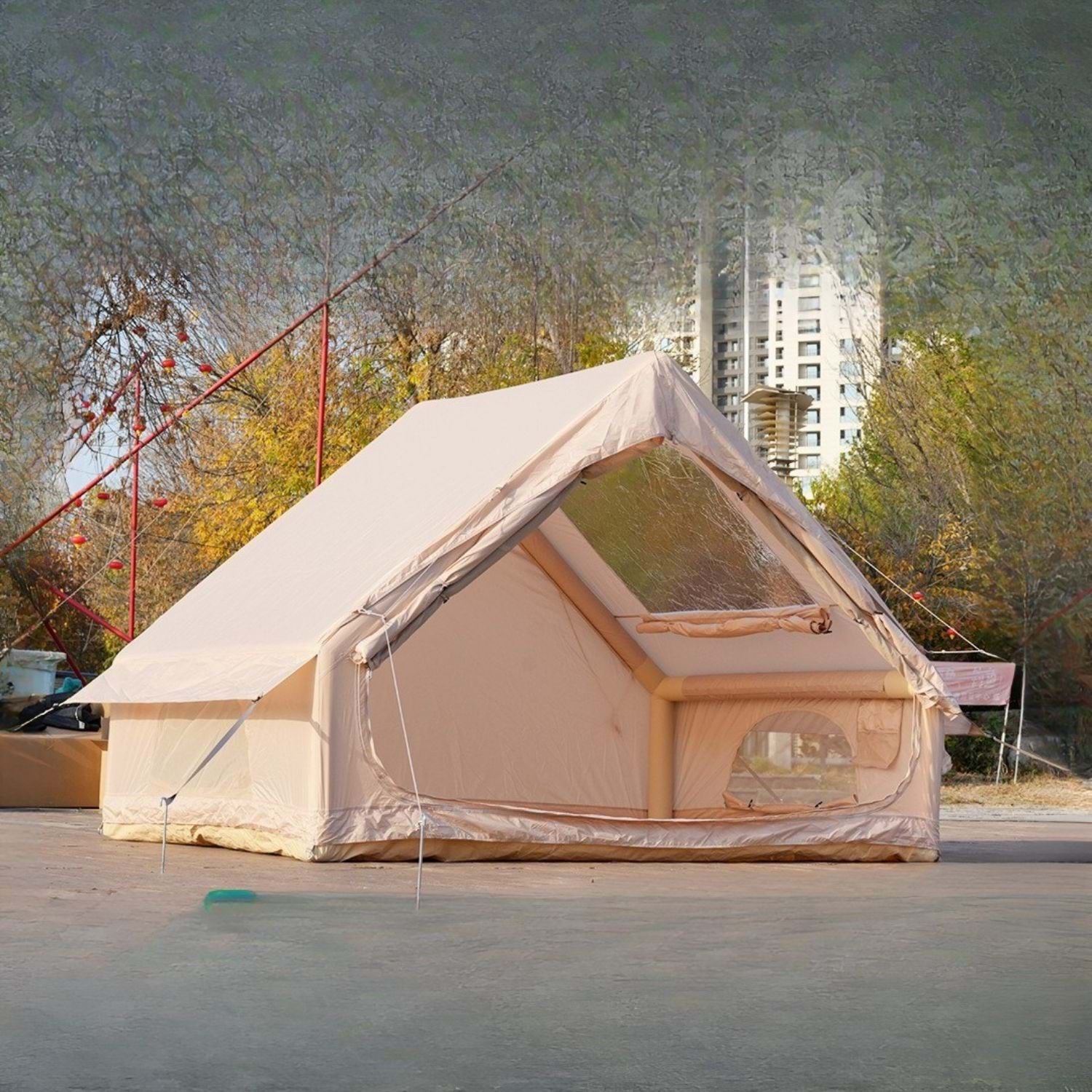 6 Kişilik 4 Mevsim Şişme Kamp Çadırı, sizi unutulmaz doğa deneyimlerine taşımak için tasarlandı. 300 x 210 x 200 cm boyutlarındaki geniş iç hacmi sayesinde çadır, 6 kişilik aileler ve kamp grupları için mükemmel bir çözüm sunar.