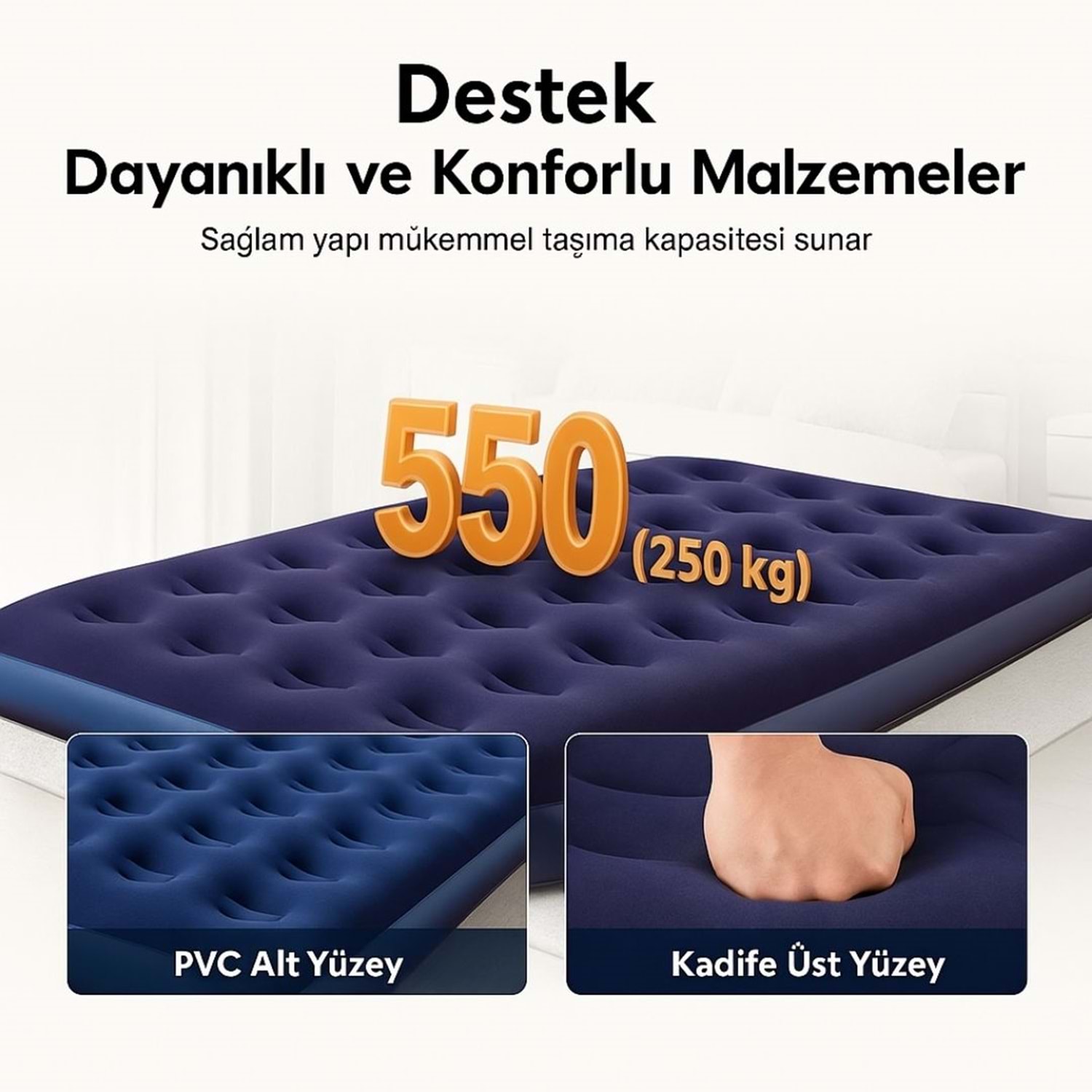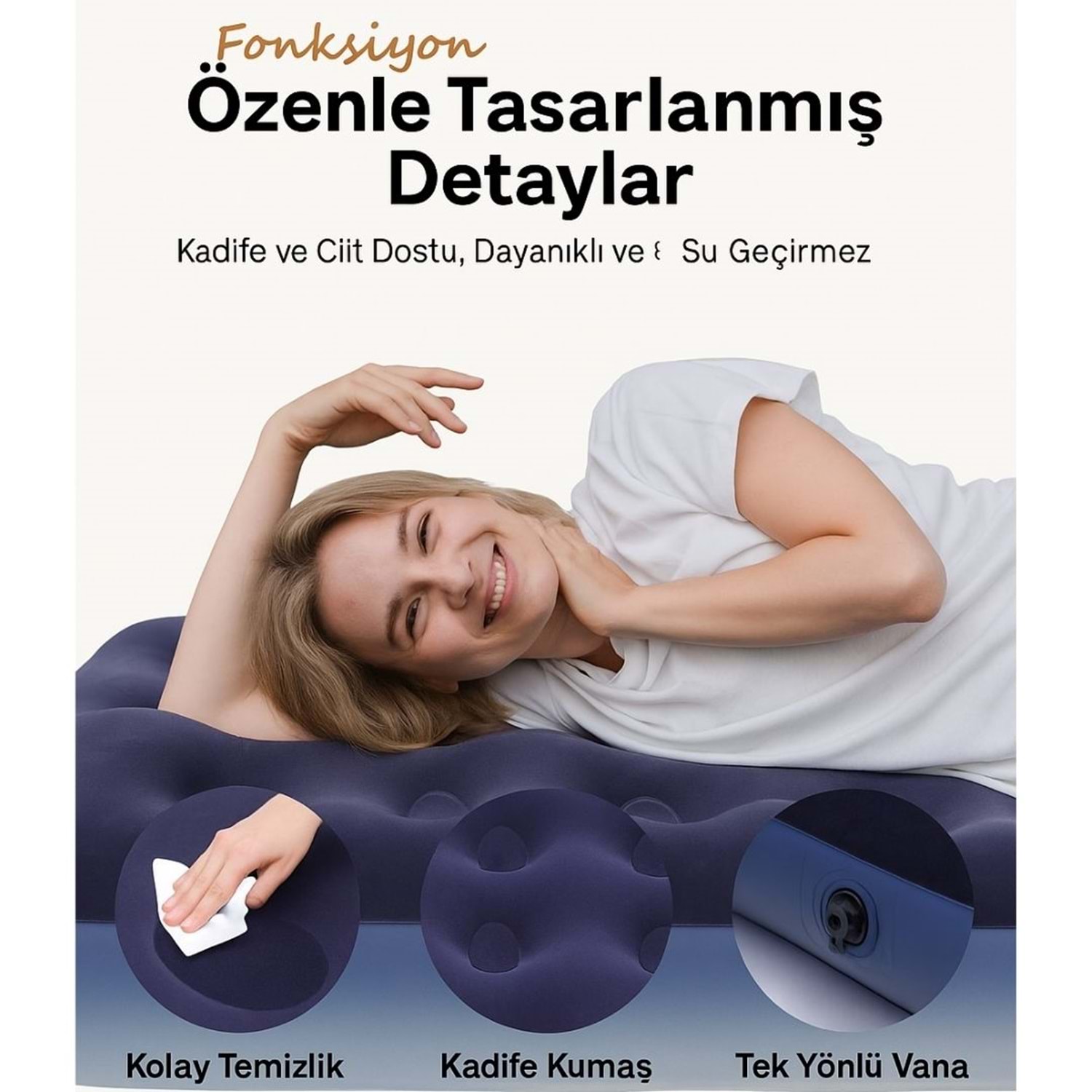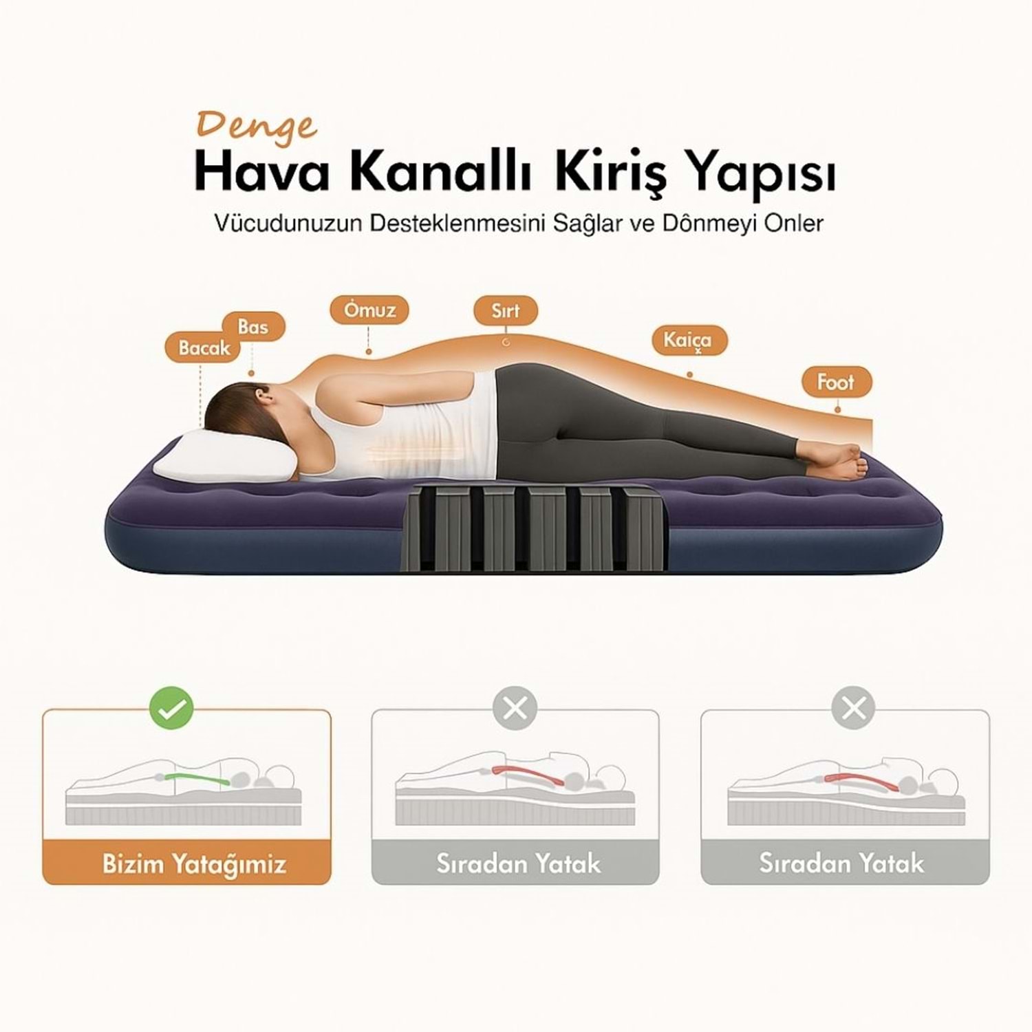 Ergonomik Destek: Hava yatağı vücudu dengeli şekilde destekleyerek konforlu uyku sağlar.