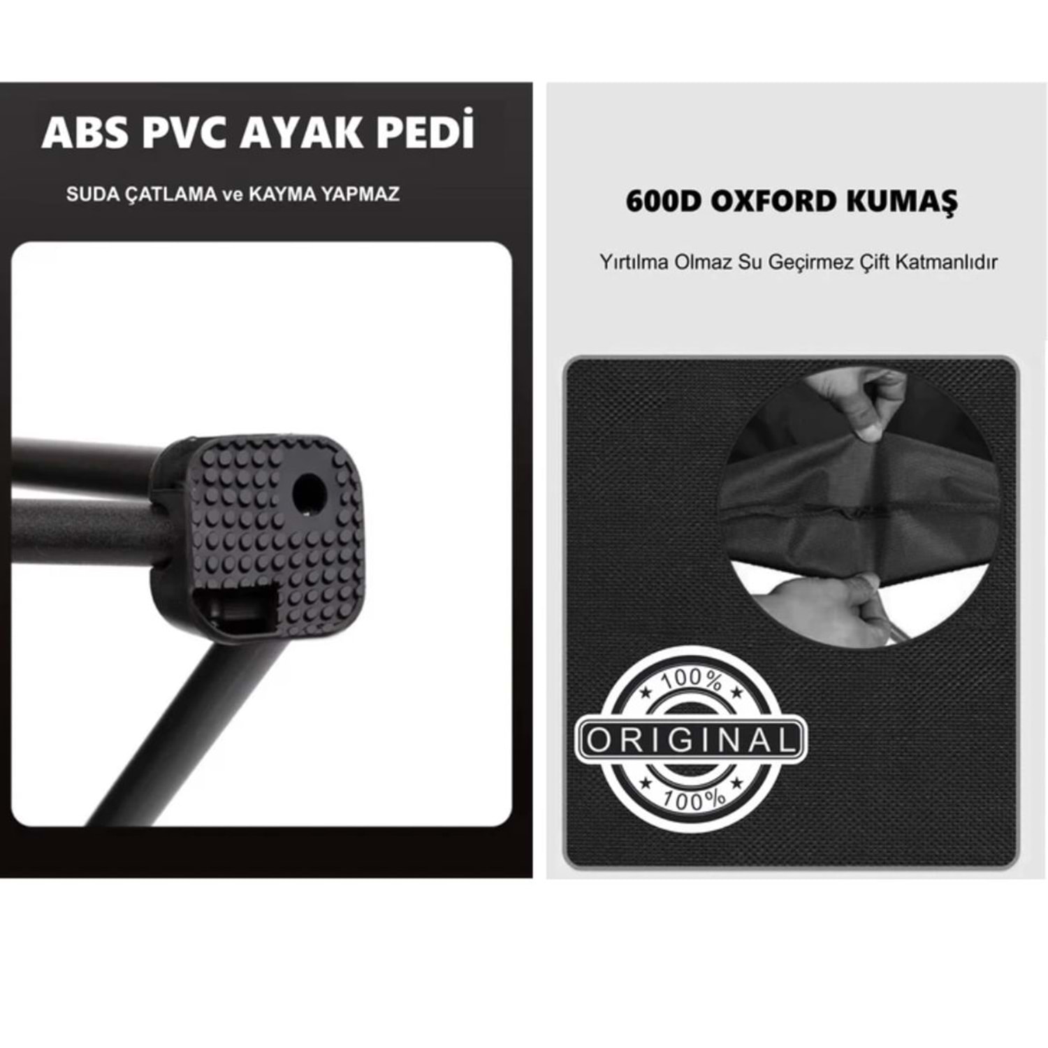 Yüksek kaliteli 690D katyon oxford kumaş sayesinde yırtılmalara, aşınmalara ve hava koşullarına karşı dirençlidir. Antibakteriyel özelliği ile uzun süreli kullanıma uygundur.
