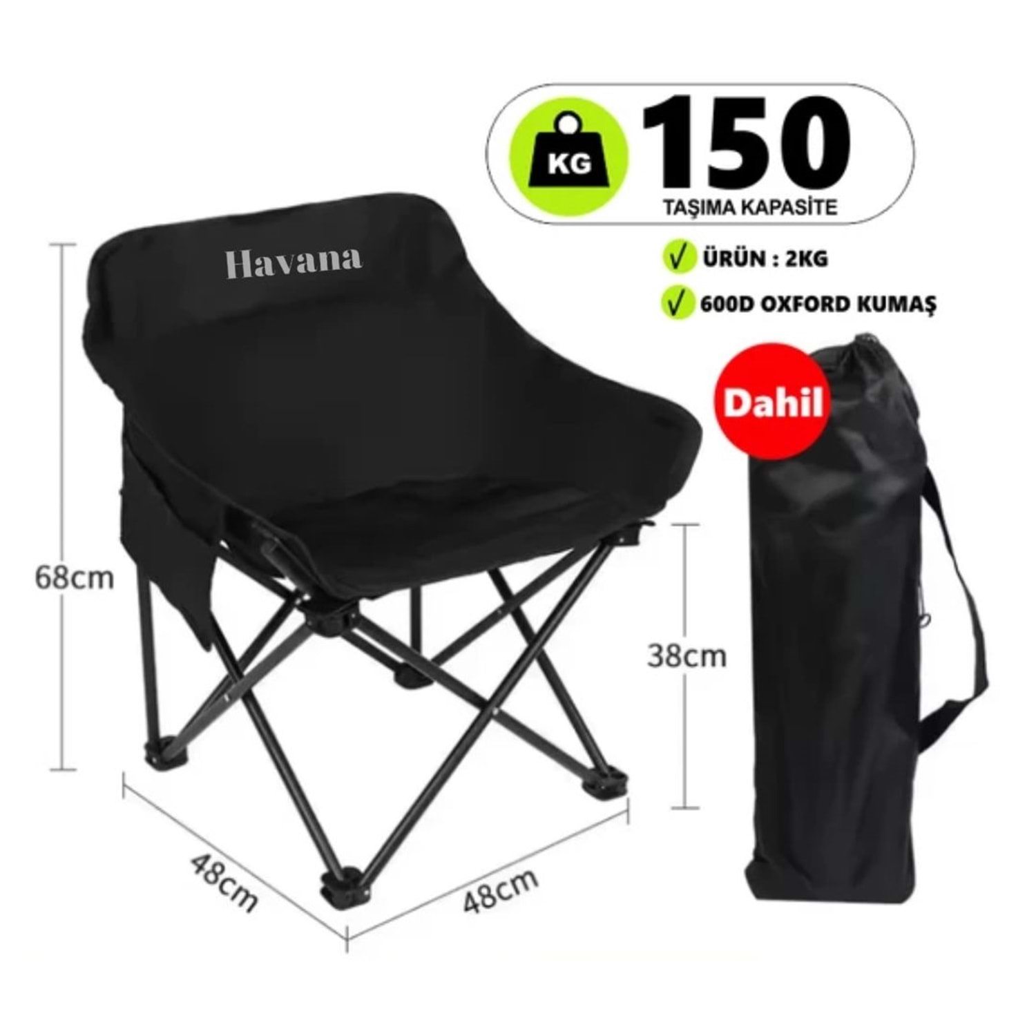 Taşıma Çantalı Katlanabilir Kamp Sandalyesi | 690D Yırtılmaz Katyon Oxford Kumaş | Alüminyum Alaşımlı Gövde | 150 kg Taşıma Kapasiteli | Siyah Rejisör Tipi Sandalye