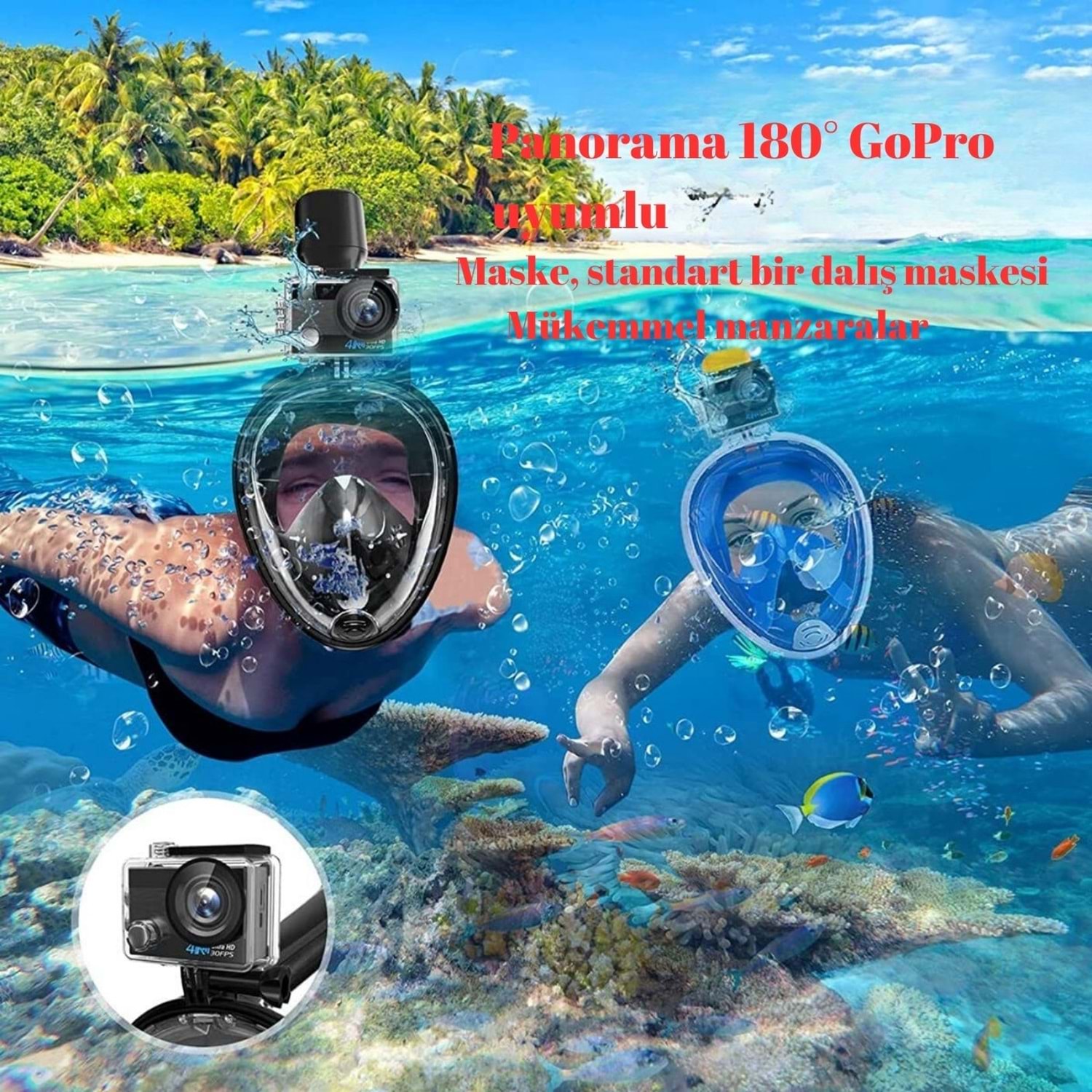 180 derecelik görüş alanı ve geniş lensi ile MountDog tam yüz şnorkel maskesi, geleneksel bir dalış maskesinden daha iyi görüntüler sunar ve yepyeni bir su altı macerası dünyasının kapılarını açar. Geleneksel maske sıkıntısından kurtulun, MountDog'un kolay nefes maskeleri size daha iyi bir su altı deneyimi sunar.